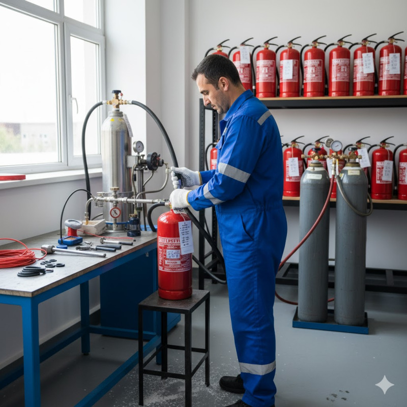 Yangın söndürme tüpü dolumu, tüpün içindeki söndürücü maddenin (genellikle Kuru Kimyevi Toz) yasal standartlara uygun şekilde ve belirli bir basınç altında yenilenmesi işlemidir. Kuru Kimyevi Tozlu (KKT) tüpler, kullanılmasalar bile içindeki tozun nem çekmesi ve topaklanması riskine karşı en geç 2 yılda bir yetkili servisler tarafından tamamen boşaltılmalı ve taze toz ile doldurulmalıdır. Bu işlem, yangın anında tüpün %100 çalışmasını garanti eder.